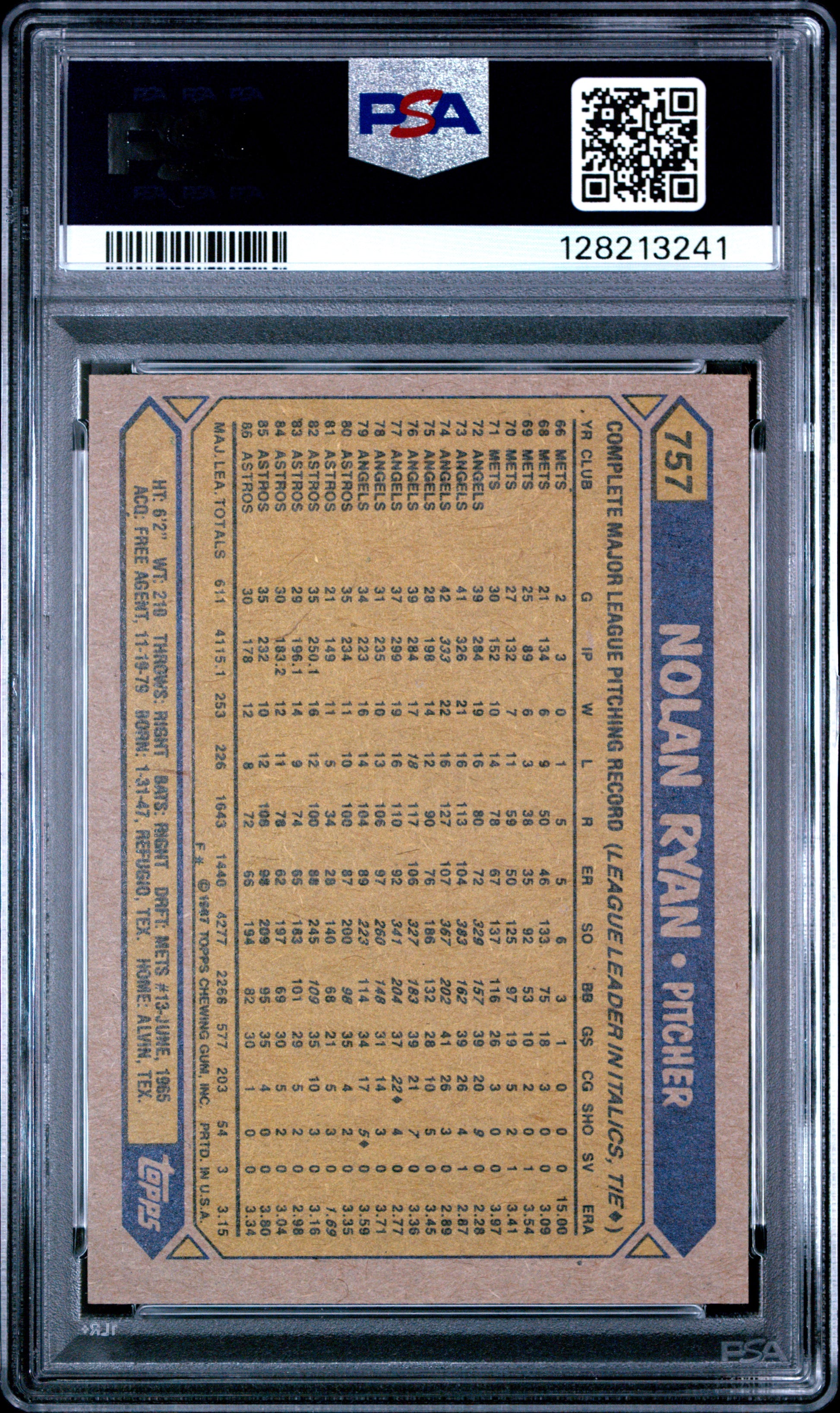 1987 TOPPS 757 NOLAN RYAN - MINT 9