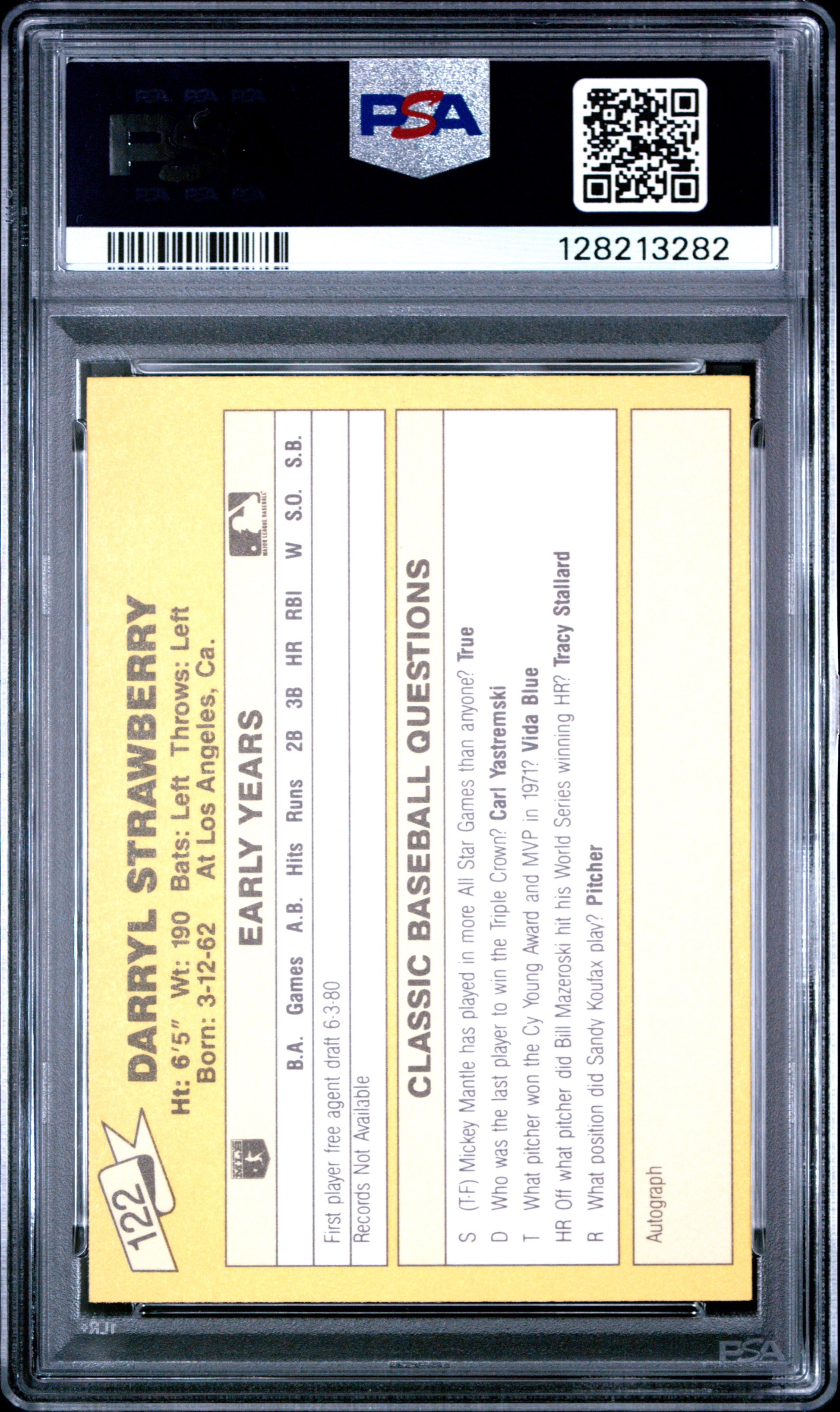 1987 CLASSIC TRAVEL UPDATE YELLOW 122 DARRYL STRAWBERRY YELLOW BACK - GEM MINT 10