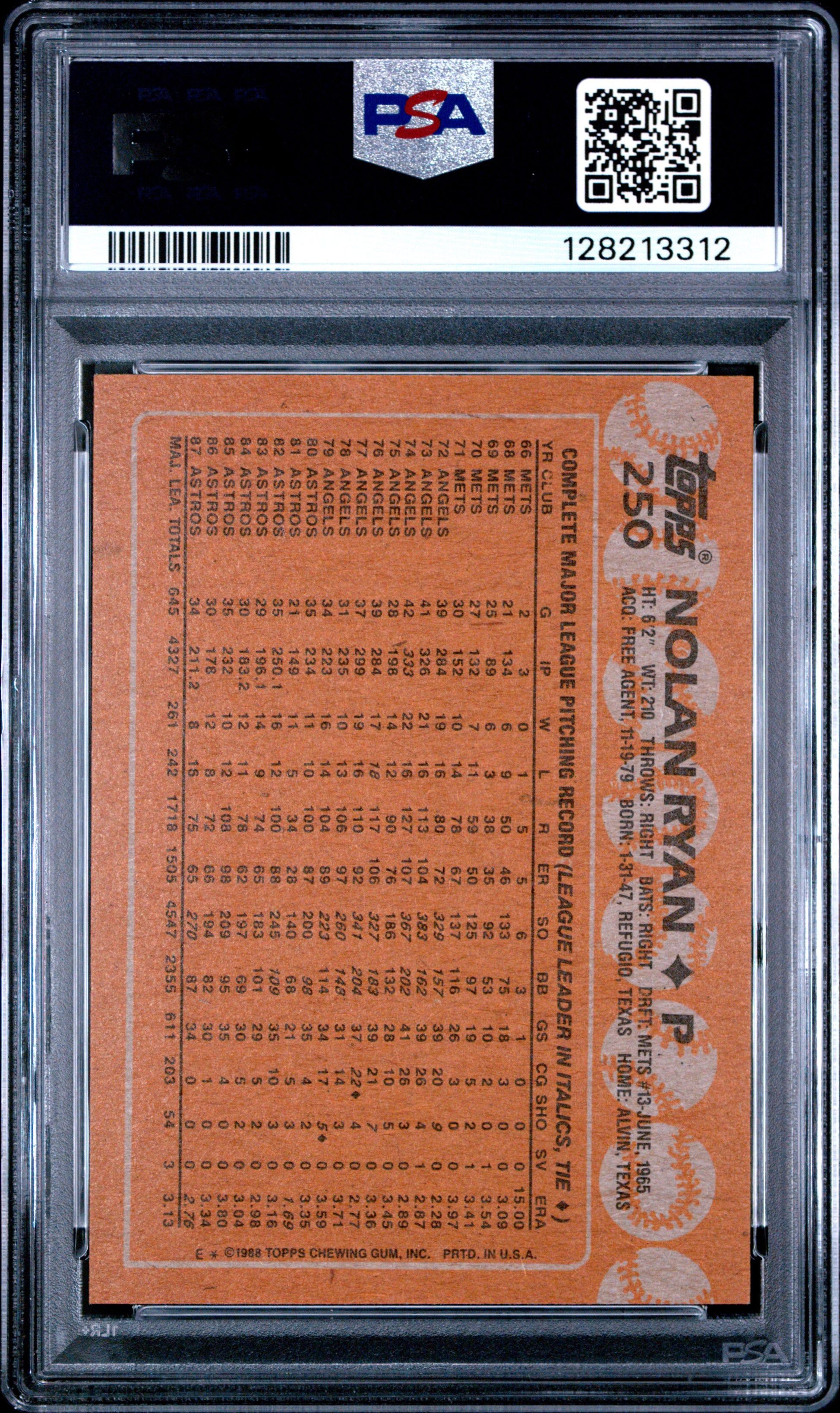 1988 TOPPS 250 NOLAN RYAN
