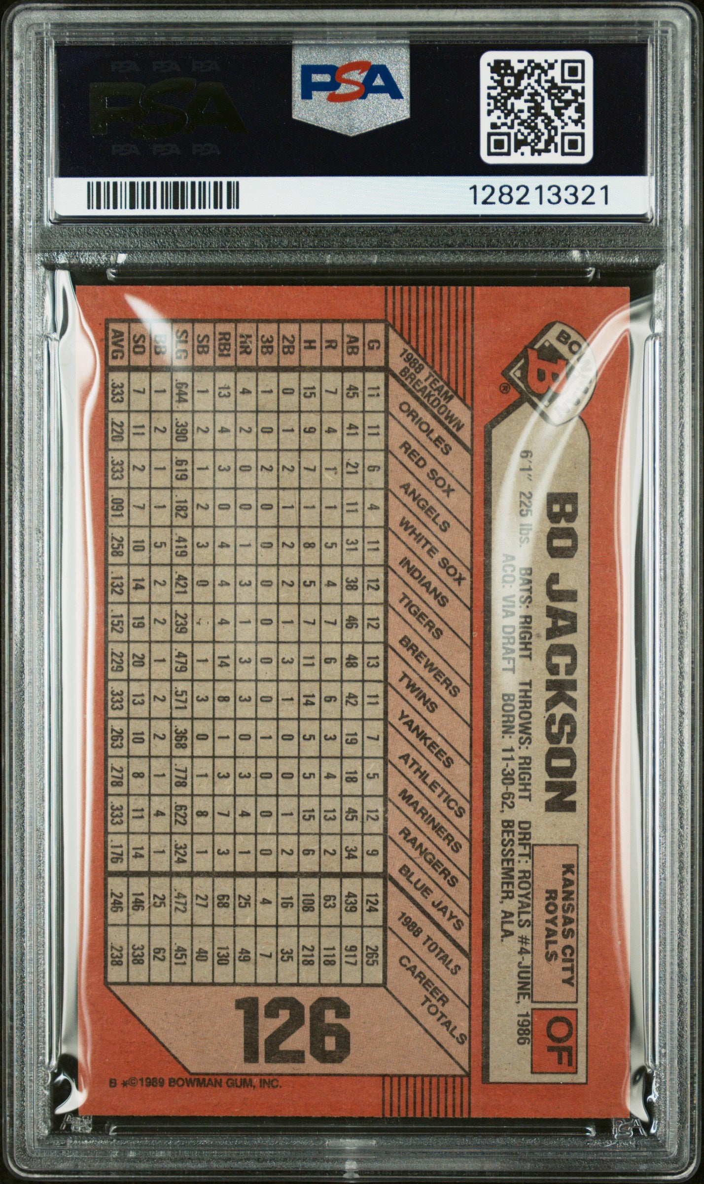 1989 BOWMAN 126 BO JACKSON